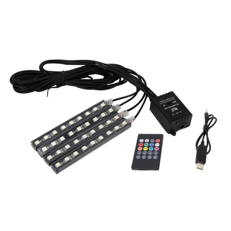 These LED light strips are USB powered, simply plug them into any USB port, and the USB cable and sound activation controller box are included for your convenience. Two of the LED light bars come with 1.2m cables, and the other two come with 1.7m cables, allowing you to place them front and rear in your vehicle or wherever you like. The self-adhesive strips on the back of each LED bar let you easily stick them to any clean, flat surface.