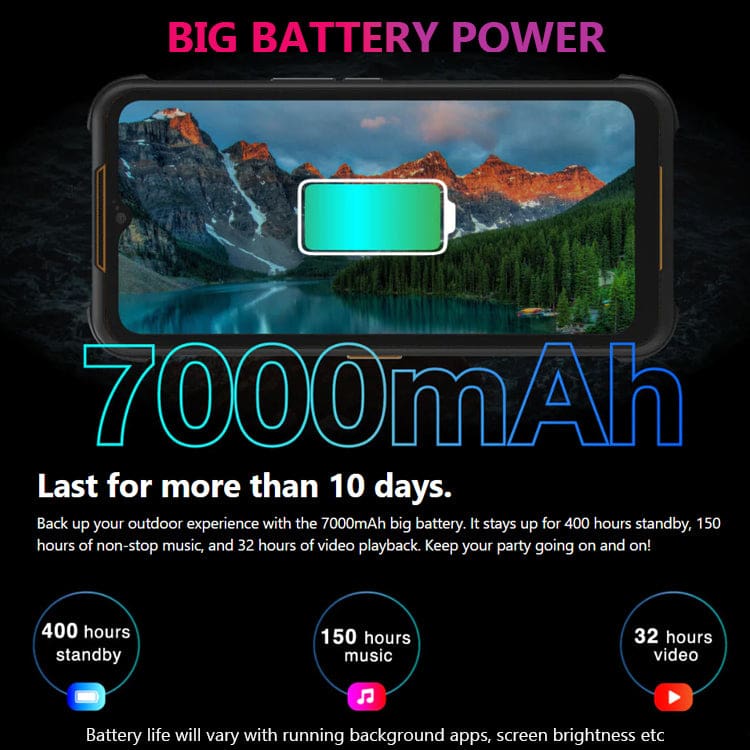 - 7000mA Long-Life Battery