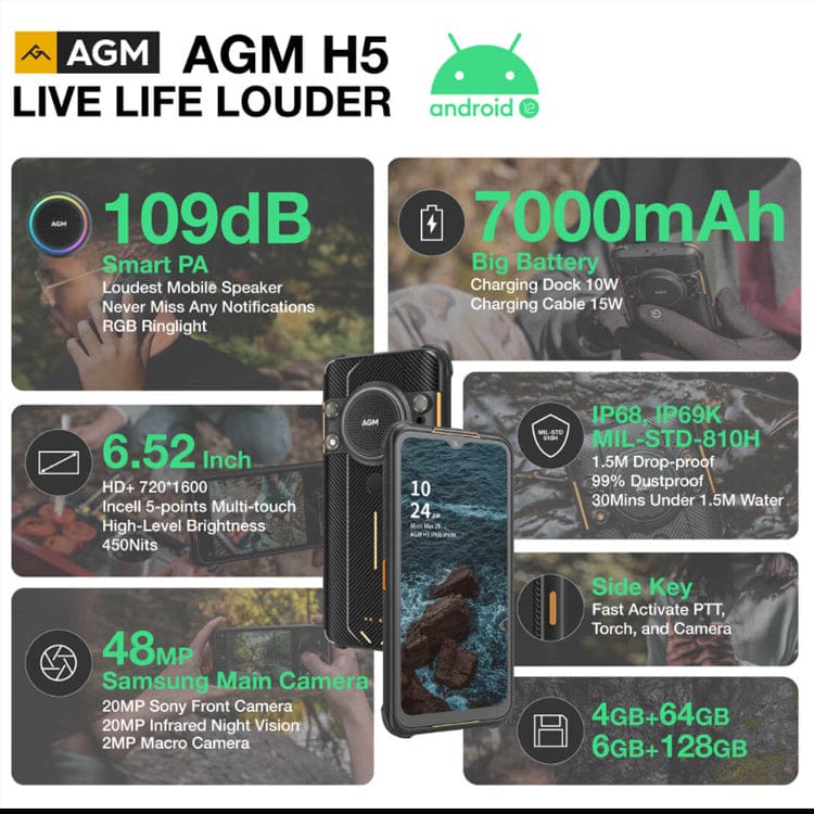 Get your hands on the AGM H5 4G Rugged Phone today and experience the ultimate in durability, performance, and style!