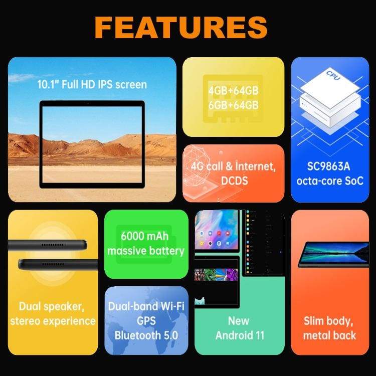 - SC9863A Octa-Core processor, Up to 1.6GHz