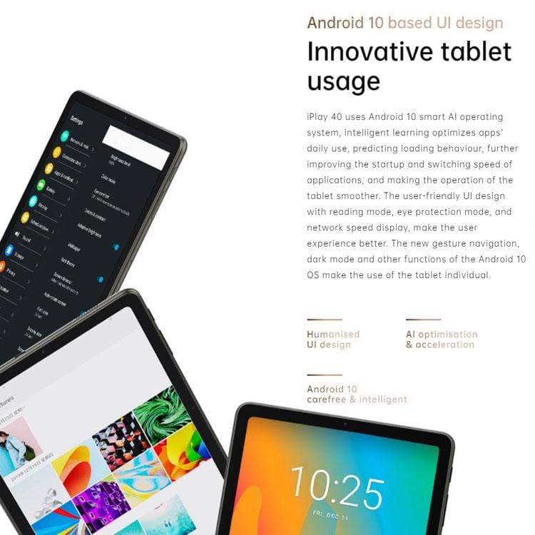 - 10.4 inch IPS In-Cell screen, 1200*2000 Full HD+ screen resolution, 10 point Capacitive Touch Screen , eye protection mode