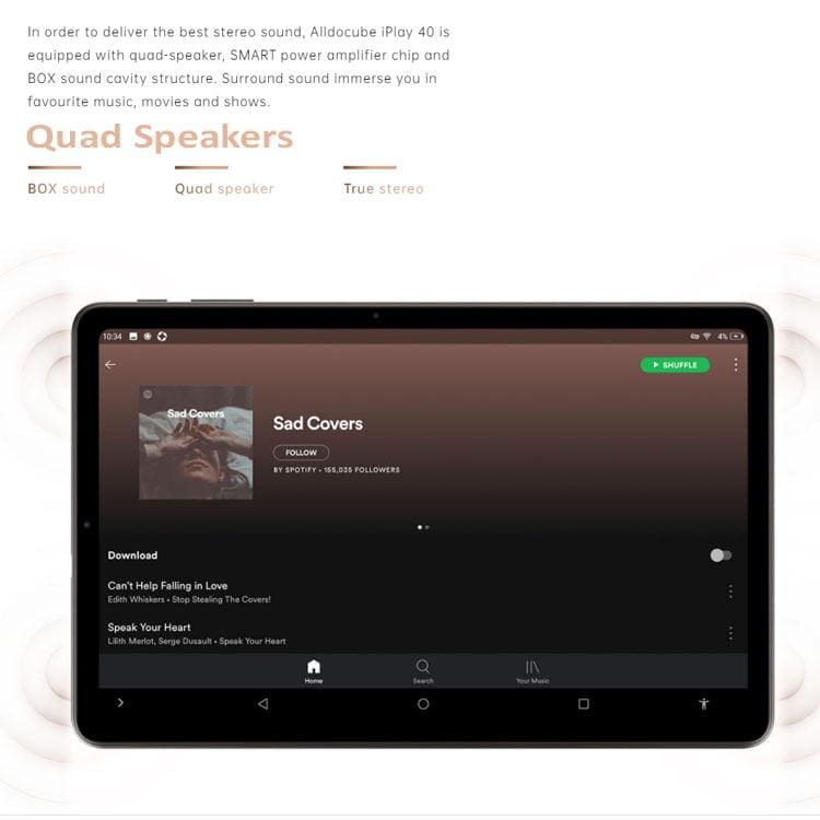The Alldocube iPlay 40 tablet with 4G, 10.4″ Super HD screen, Quad Speaker system and high speed connectivity