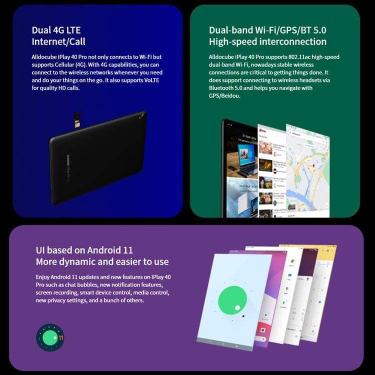 The Alldocube iPlay 40 H tablet with 4G, 10.4″ Super HD screen, Quad Speaker system, high speed connectivity and Android 11
