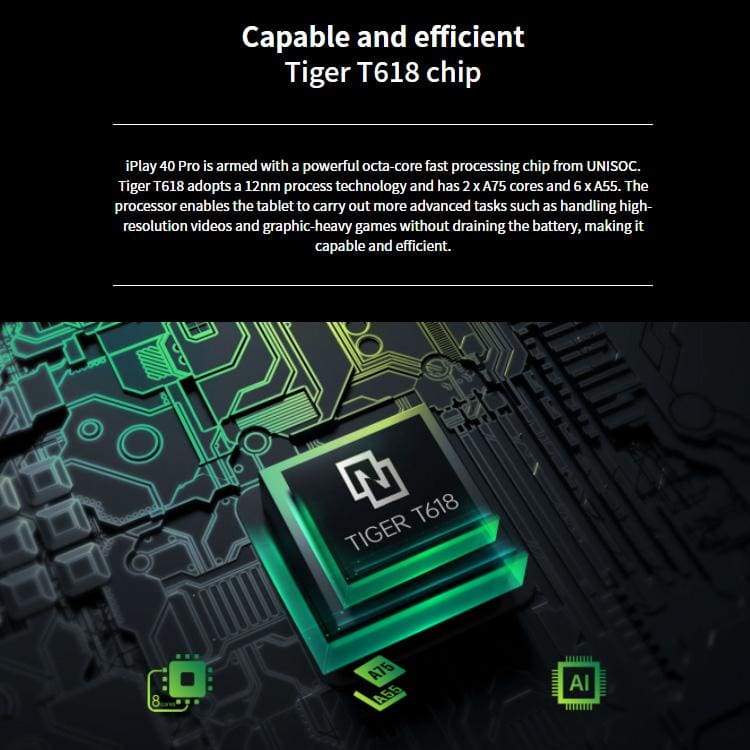 - Tiger T618 Octa-Core Processor, Up to 2.0GHz