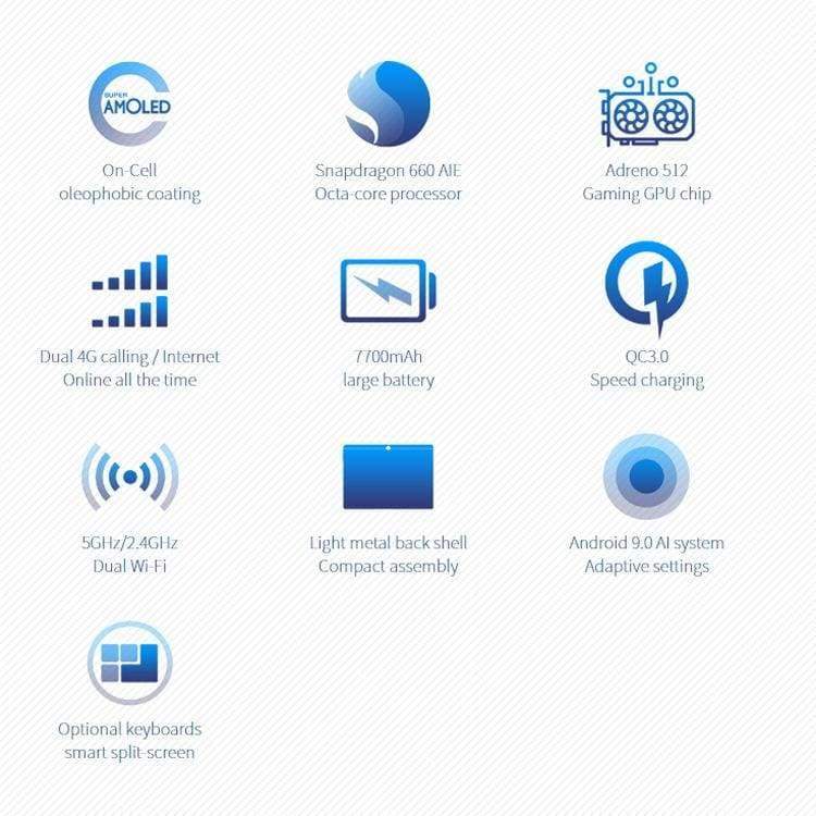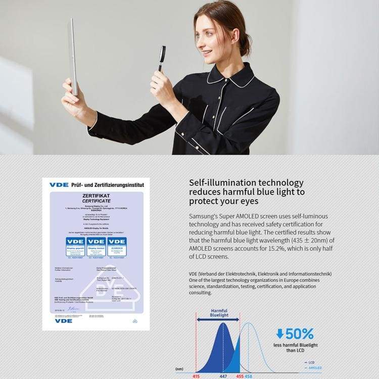 - 10.5″ IPS AMOLED 2560*1600 Screen, Oleophobic Coating, Eye protection
