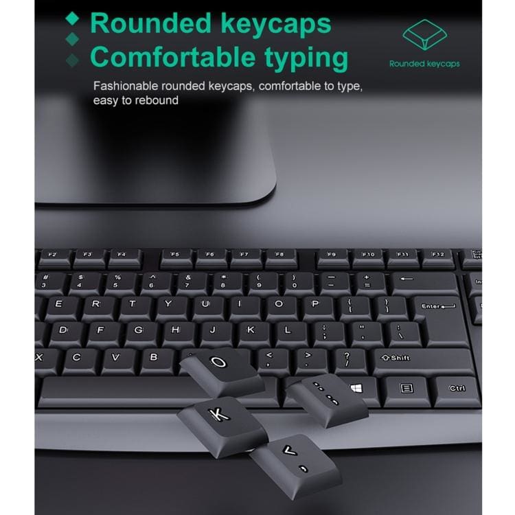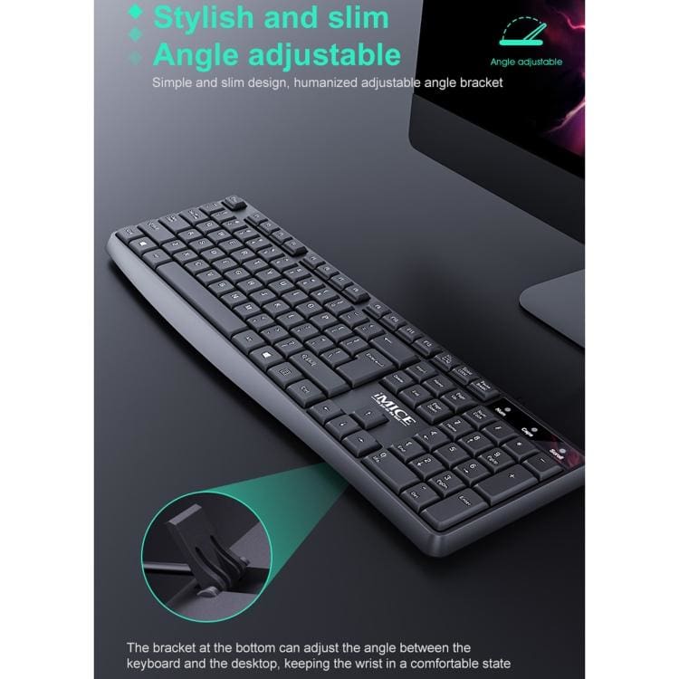 The AN100 wireless desktop set offers a full size keyboard with easy to read characters and left or right handed optical mouse