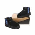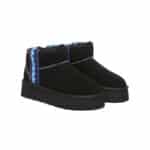 Introducing the highly sought-after Tazzy Mini Vance Platform UGG Boots by Australian Shepherd—a fan favourite reimagined. This iconic silhouette returns with a modern embroidered border that adds flair and individuality to your everyday look. The luxurious sheepskin wool interior offers warmth and plush comfort, while the water-resistant cow suede exterior ensures durability against dirt and moisture. Sitting on a stylish platform sole, these boots are designed to take you from casual daywear to cosy evening style in ultimate comfort.