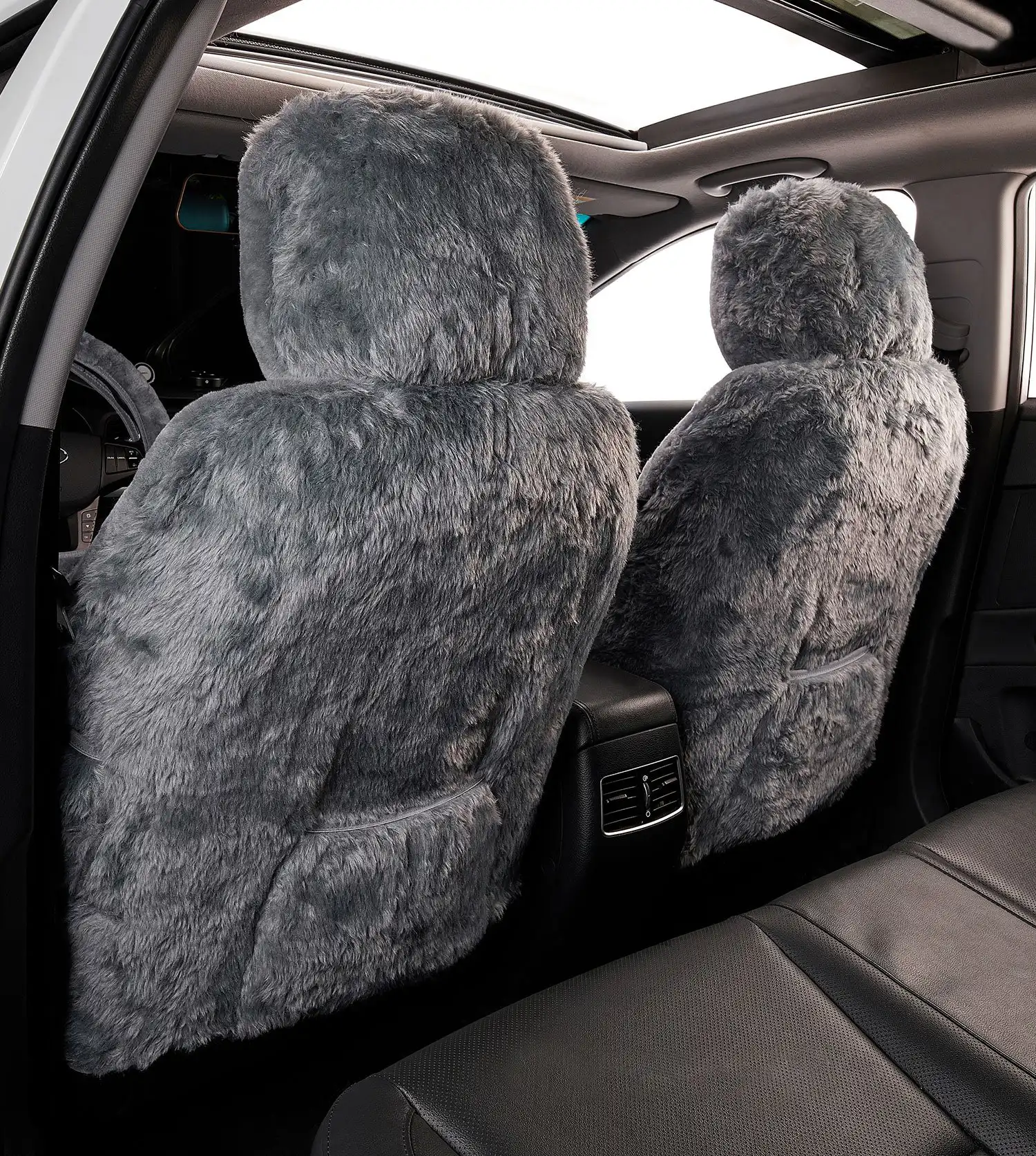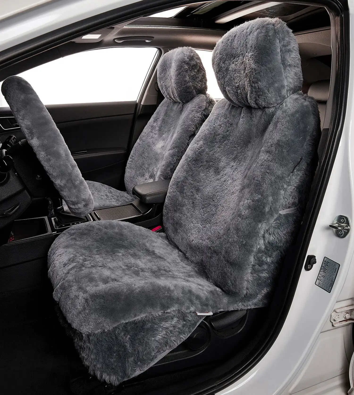 Crafted from premium sheepskin wool, these seat covers offer the ultimate combination of softness and breathability, ensuring comfort year-round. Available in two elegant colours, Ivory and Charcoal, to seamlessly match the interior of most vehicles.