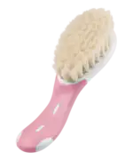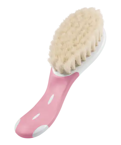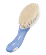 The extra-soft baby brush from NUK has bristles made 100% from goat’s hair and is particularly suitable for newborns. Being a natural product and exceptionally soft, it turns brushing and a scalp massage into a little wellness experience for your baby. You can use the brush for the daily care of a sensitive, little scalp. The shape of the handle is easy to grasp and hold securely. The brush is available in the delicate colours of pink and light blue.