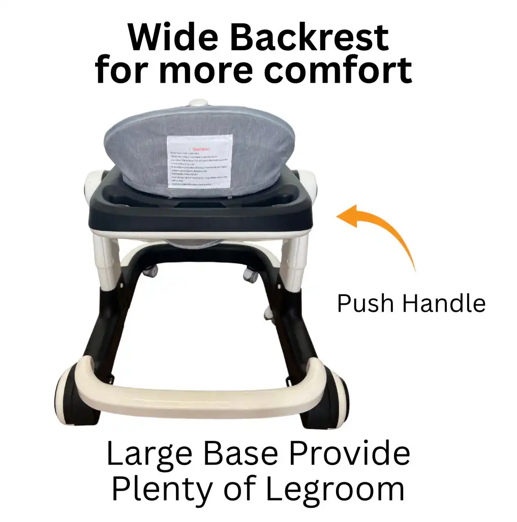 Give your little driver the ultimate ride with the Roadster 3-in-1 Baby Walker 🚘. Designed to look and feel like a mini car, it’s packed with fun, comfort, and safety all in one. With interactive lights and music (batteries not included), a steering wheel toy bar, and a stylish car-inspired front, this walker makes learning to walk exciting while keeping mealtime and playtime simple.