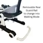 • Removable Rear Guard Rail for added security or open walking mode