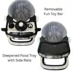 • Removable Toy Bar – swap between playtime and mealtime easily
