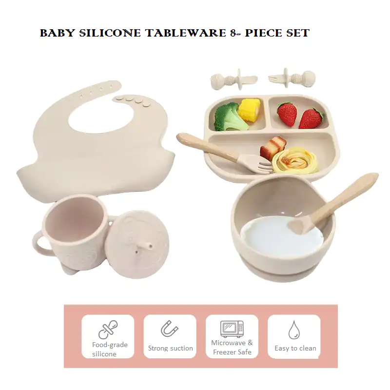 Make mealtime fun, safe, and easy with our 8-Piece Baby Silicone Feeding Set in a calming Warm Sand shade. Designed with both babies and parents in mind, this all-in-one feeding kit includes everything your little one needs for self-feeding success.