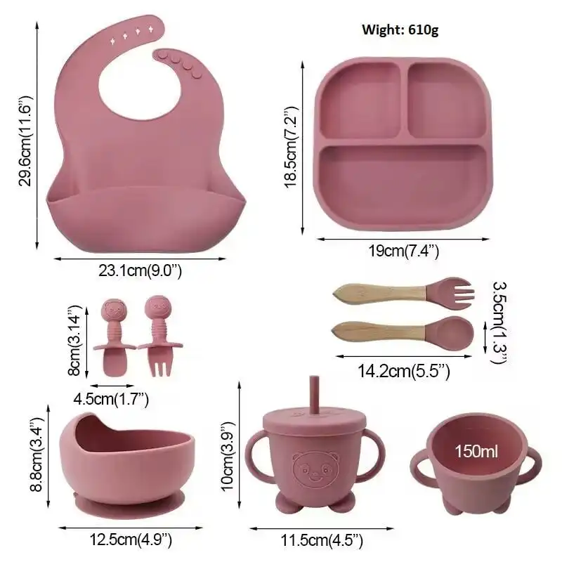 Perfect for baby-led weaning, this set promotes independent eating while minimizing mess. The neutral tone blends beautifully with any kitchen or dining setup — stylish, functional, and parent-approved.