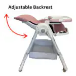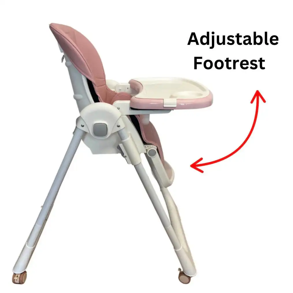 Elevate Adjustable and Folding High Chair with Locking Wheels & Storage Basket – PINK