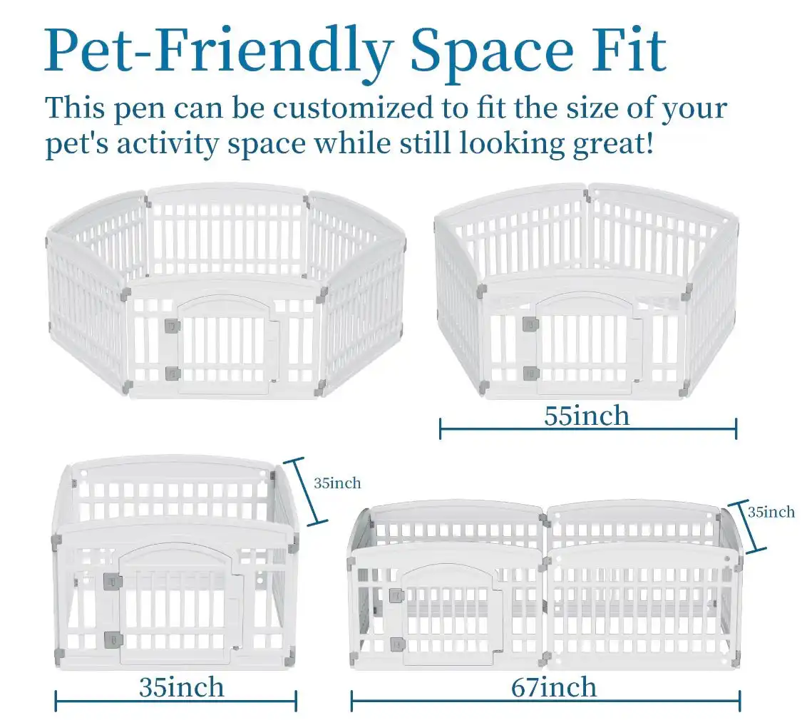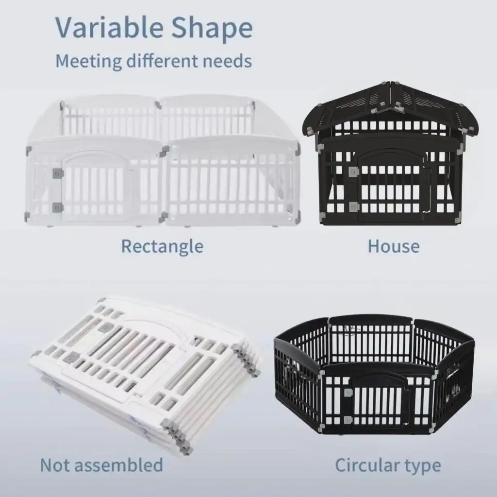 - Adjustable Layout: Configure as a rectangle, circle, or enclosed pet house with roof