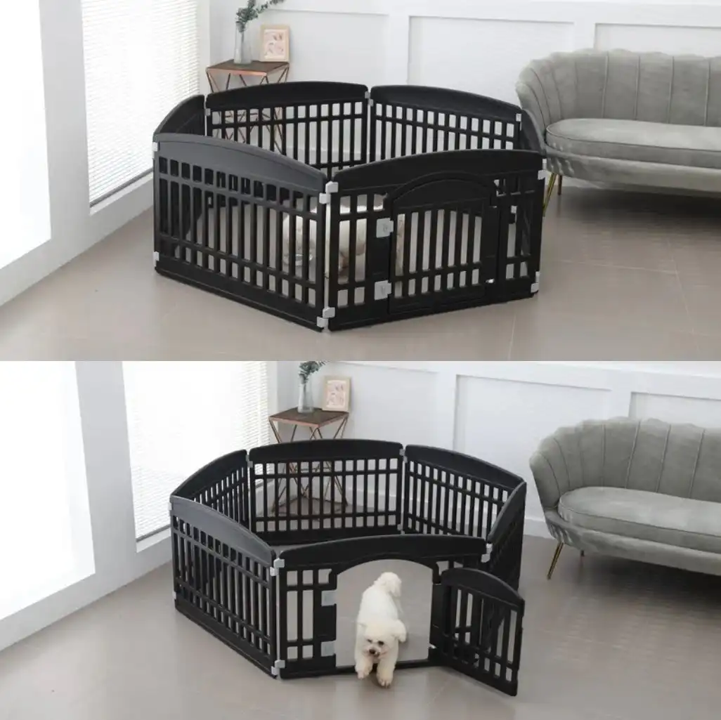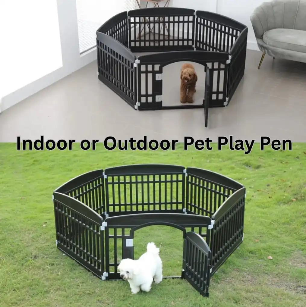 Give your pet a safe and secure space to play indoors or outdoors with our versatile 6-piece Pet Play Pen. Designed for small to medium-sized dogs, this durable pen offers multiple configuration options including a circular layout, rectangular shape, or even a cozy house with a roof!