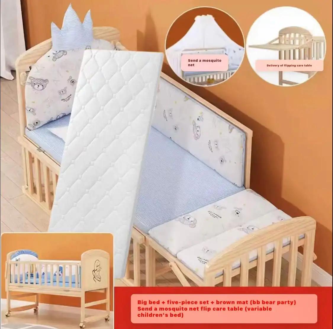 – Skin-Friendly Fabrics: The included bedding set is made from 40 comb cotton, known for its softness and durability, ensuring a comfortable sleep environment for your baby.