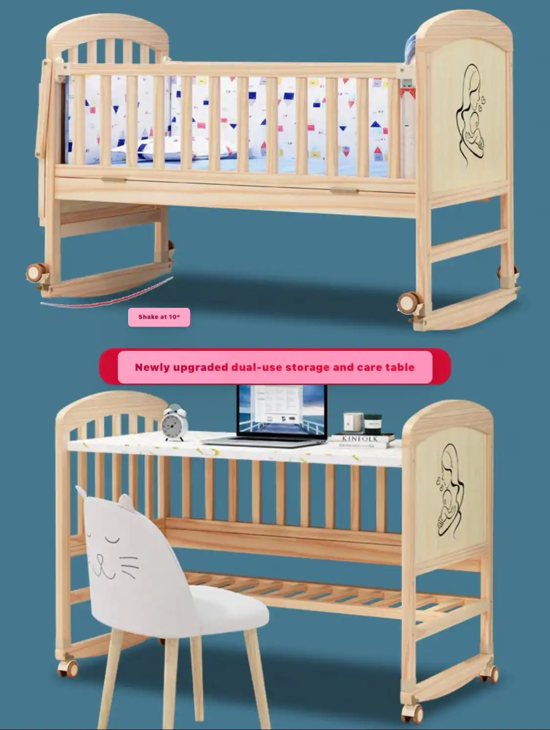 Upgrade your nursery with this beautifully crafted multifunctional wooden baby bed, designed to ensure comfort, safety, and convenience for your baby and you. Our versatile bed serves multiple functions, adapting to your growing baby’s needs.