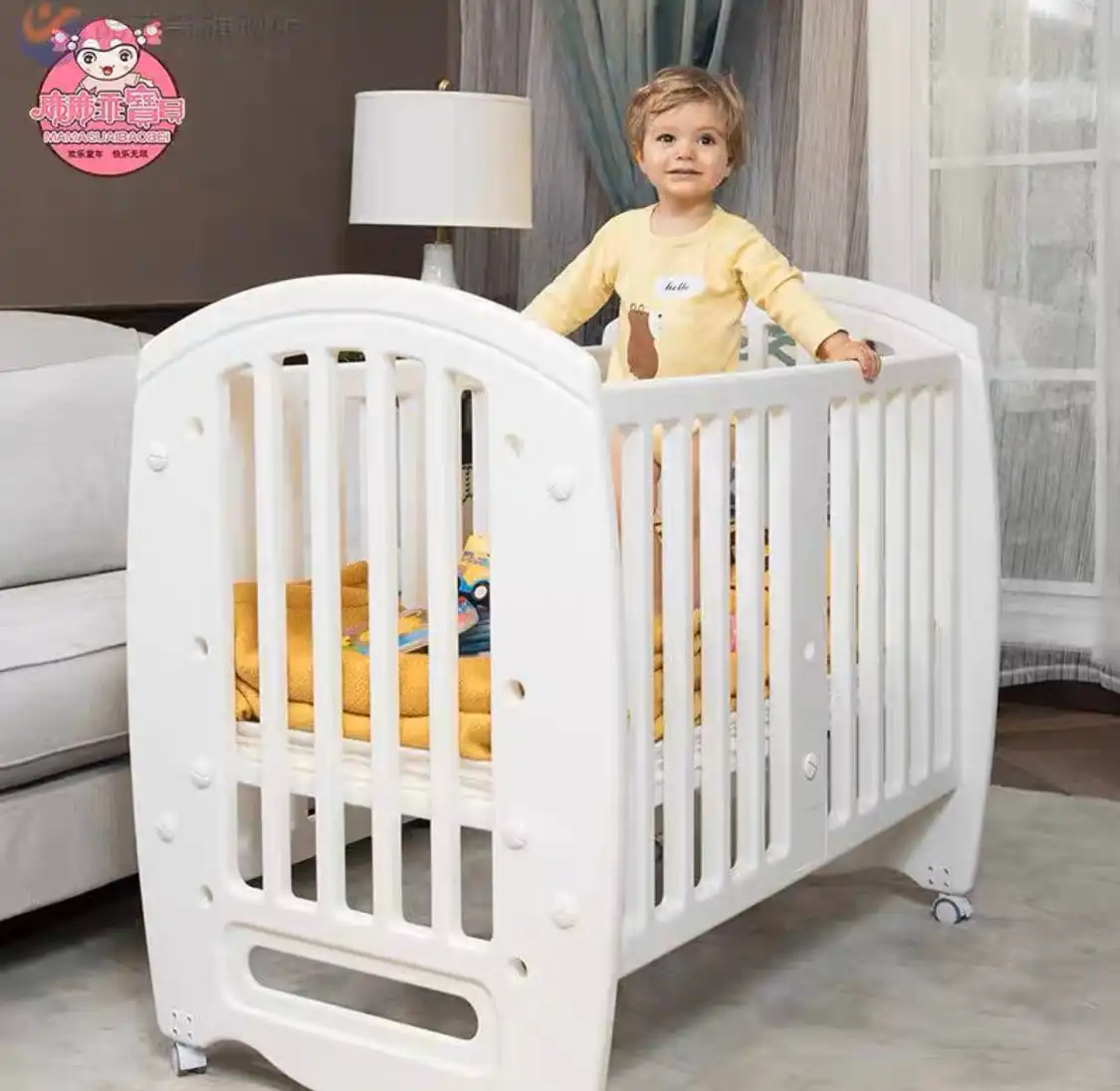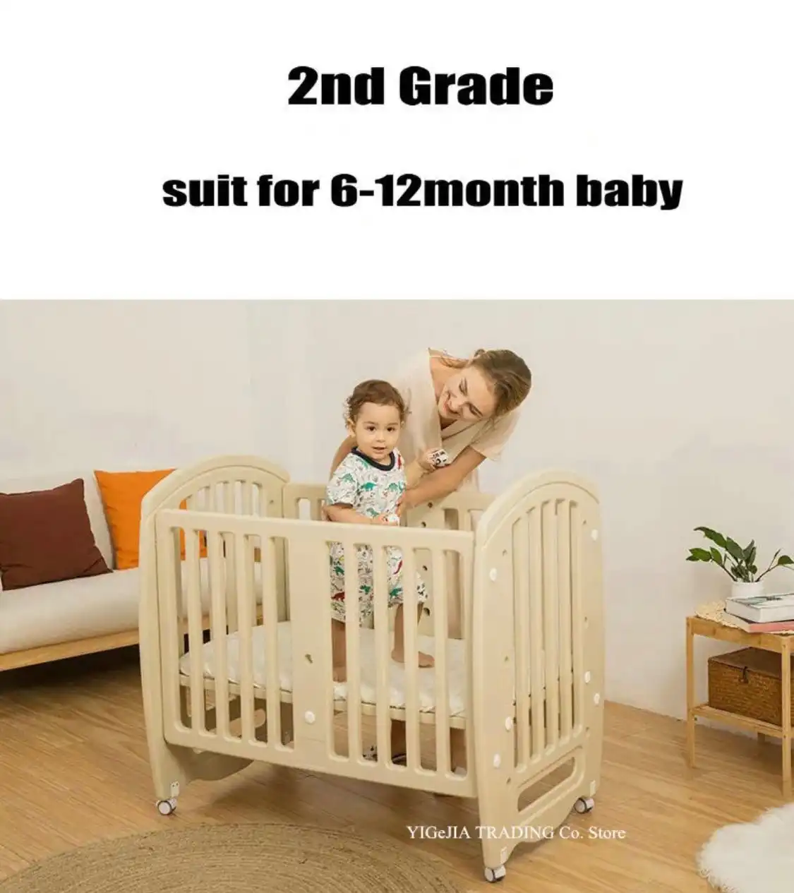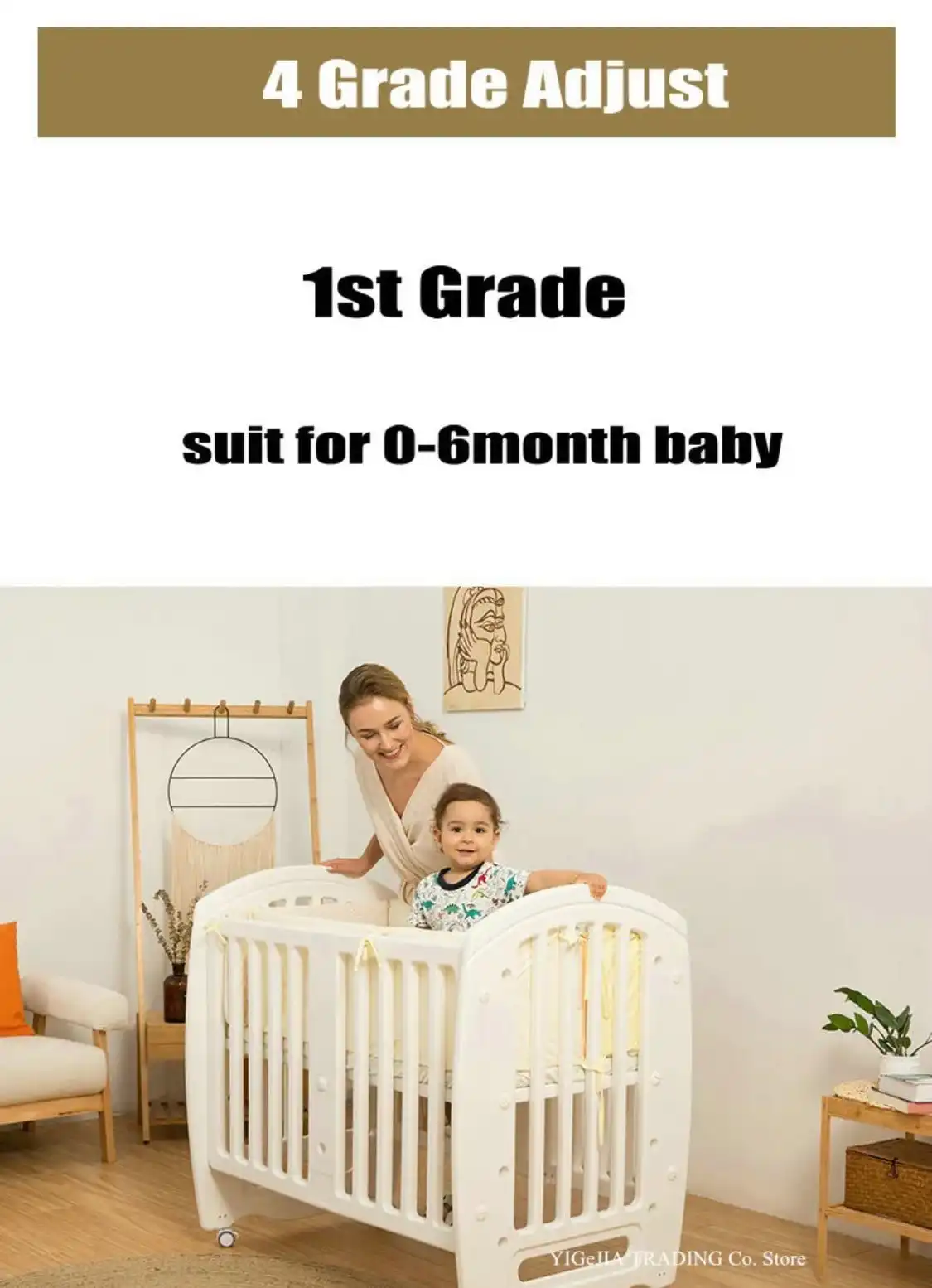 4 grade adjust baby bed height, 30cm, 46cm, 61cm, 80cm, can adjust according to your requirements.