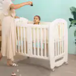 Baby cot with 4 wheels, parents can push the baby bed easily, 360° universal wheel, also can be locked.