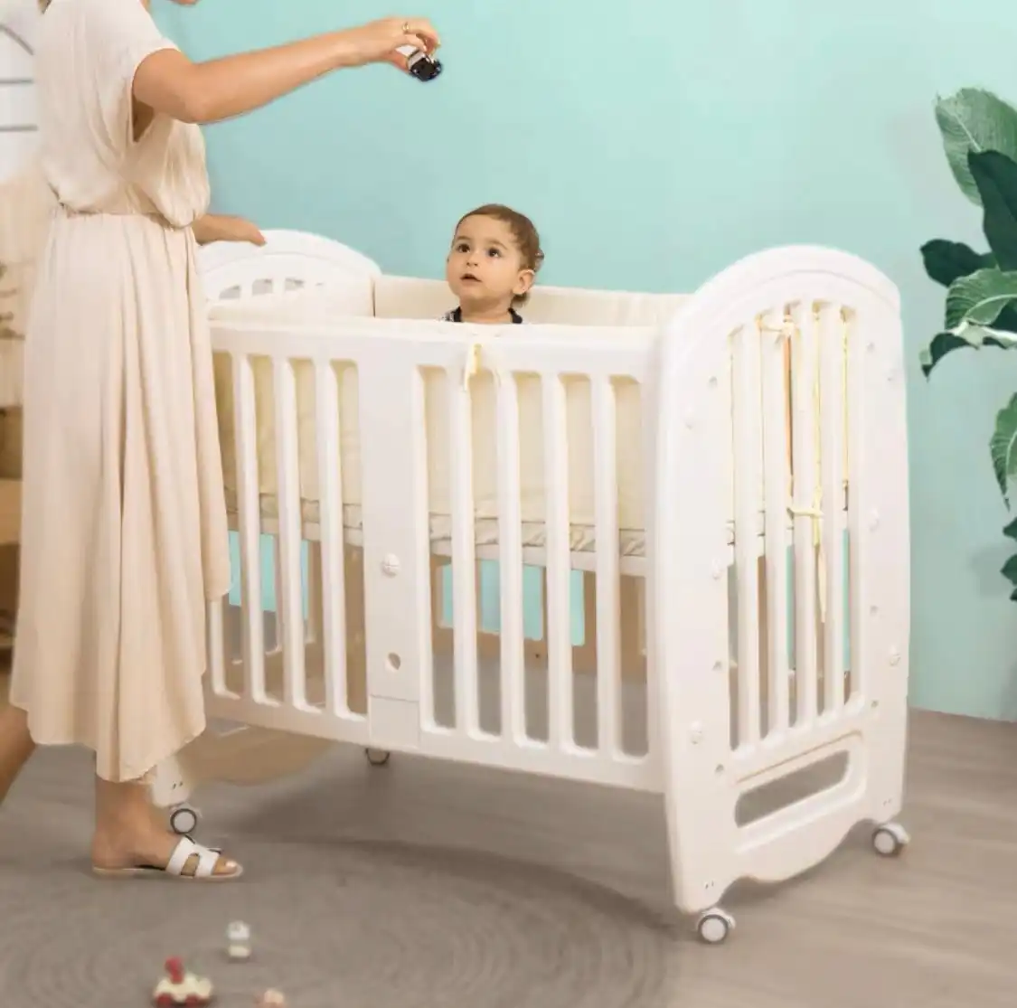 Can disassemble one side to connect with the adult bed, it is convenient for mom to take care with baby.