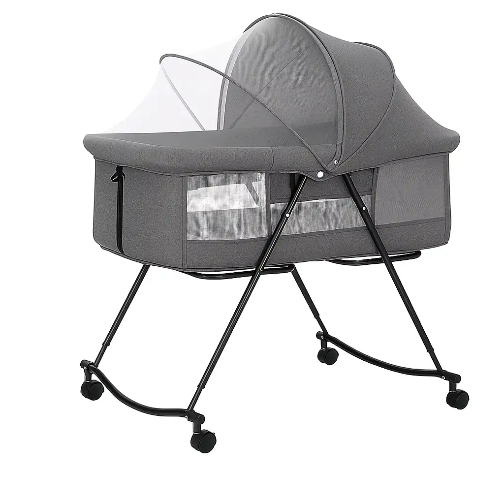 Bring comfort, style, and ease together with the Luna Portable Folding Bassinet. With its easy-fold frame, soothing manual rocker mode, and smooth-rolling wheels, it’s designed to move with your lifestyle — keeping baby close, calm, and content wherever you are.