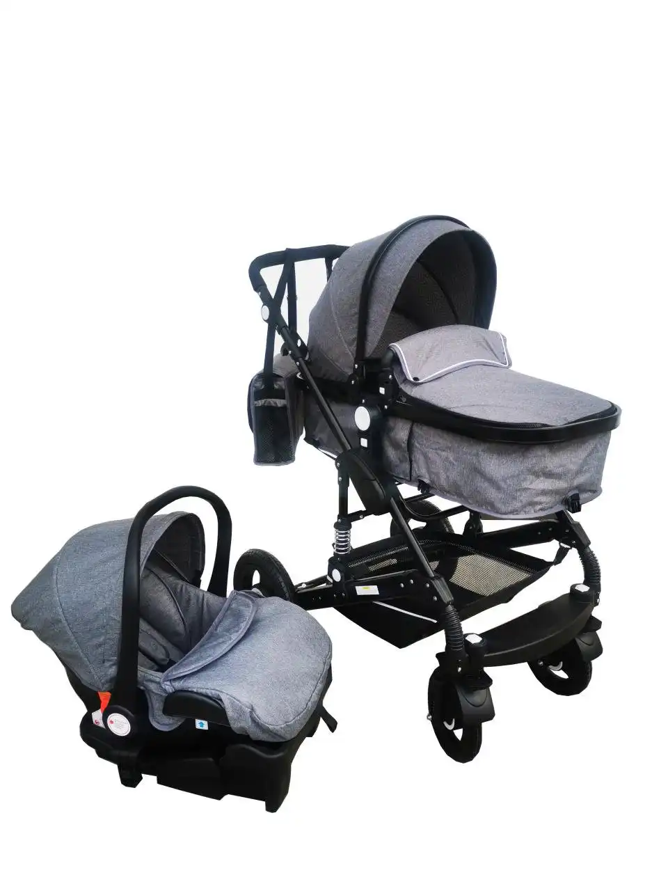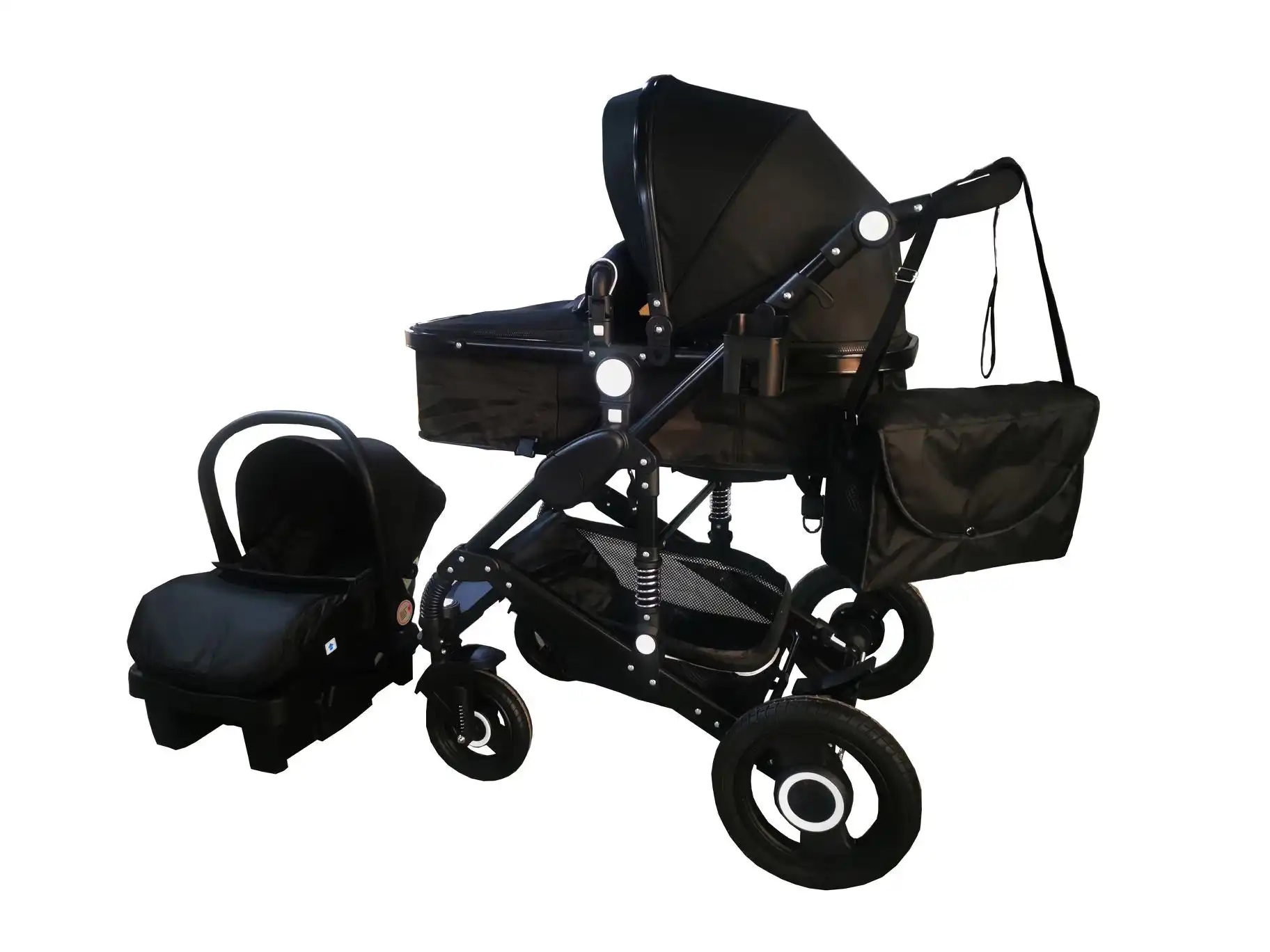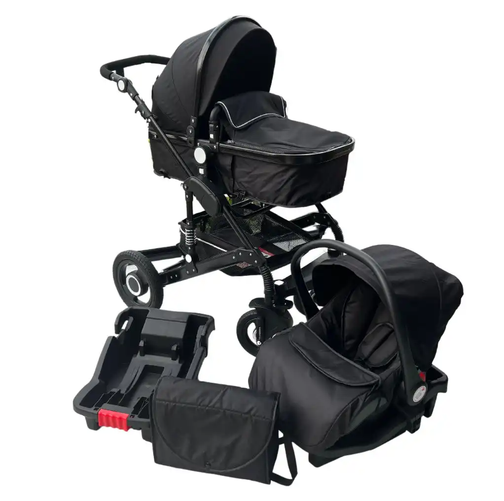 Ultimate 3 in 1 baby stroller + bassinet + capsule and base. Comprehensive travel bundle and simple to operate. Car seat can connect to stroller. Excellent value and superior quality. Very dependable and durable. Four strong rubber wheels and suspensions will make the ride more stable and comfortable for baby.
