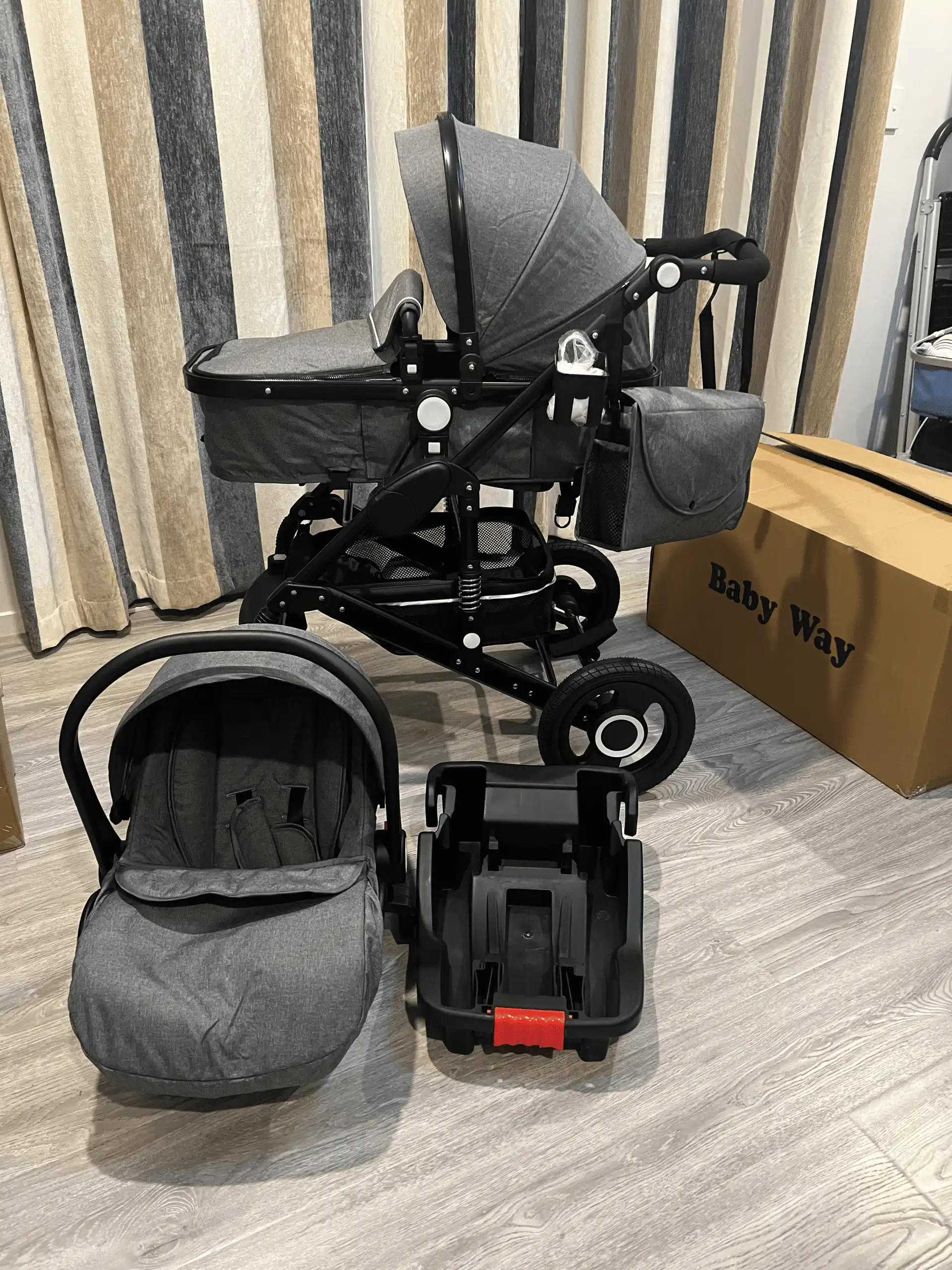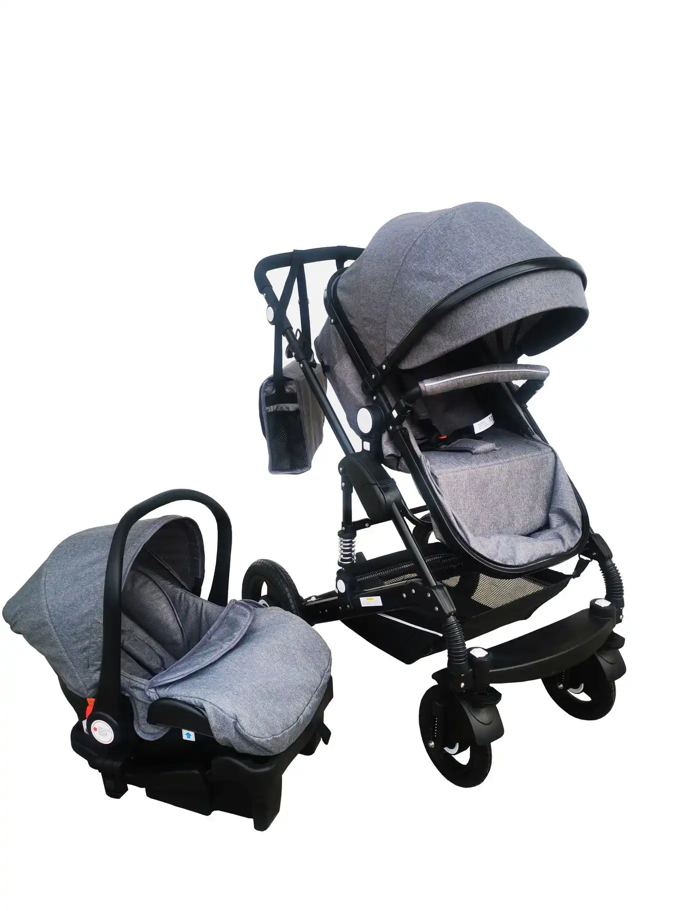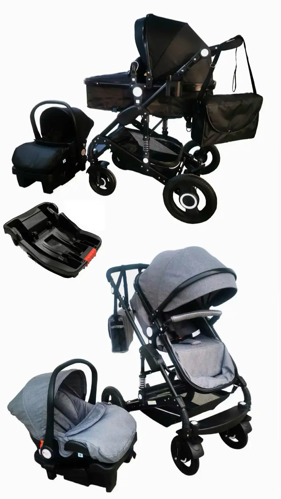 Ultimate 3 in 1 baby stroller + bassinet + capsule and base. Comprehensive travel bundle and simple to operate. Car seat can connect to stroller. Excellent value and superior quality. Very dependable and durable. Four strong rubber wheels and suspensions will make the ride more stable and comfortable for baby.