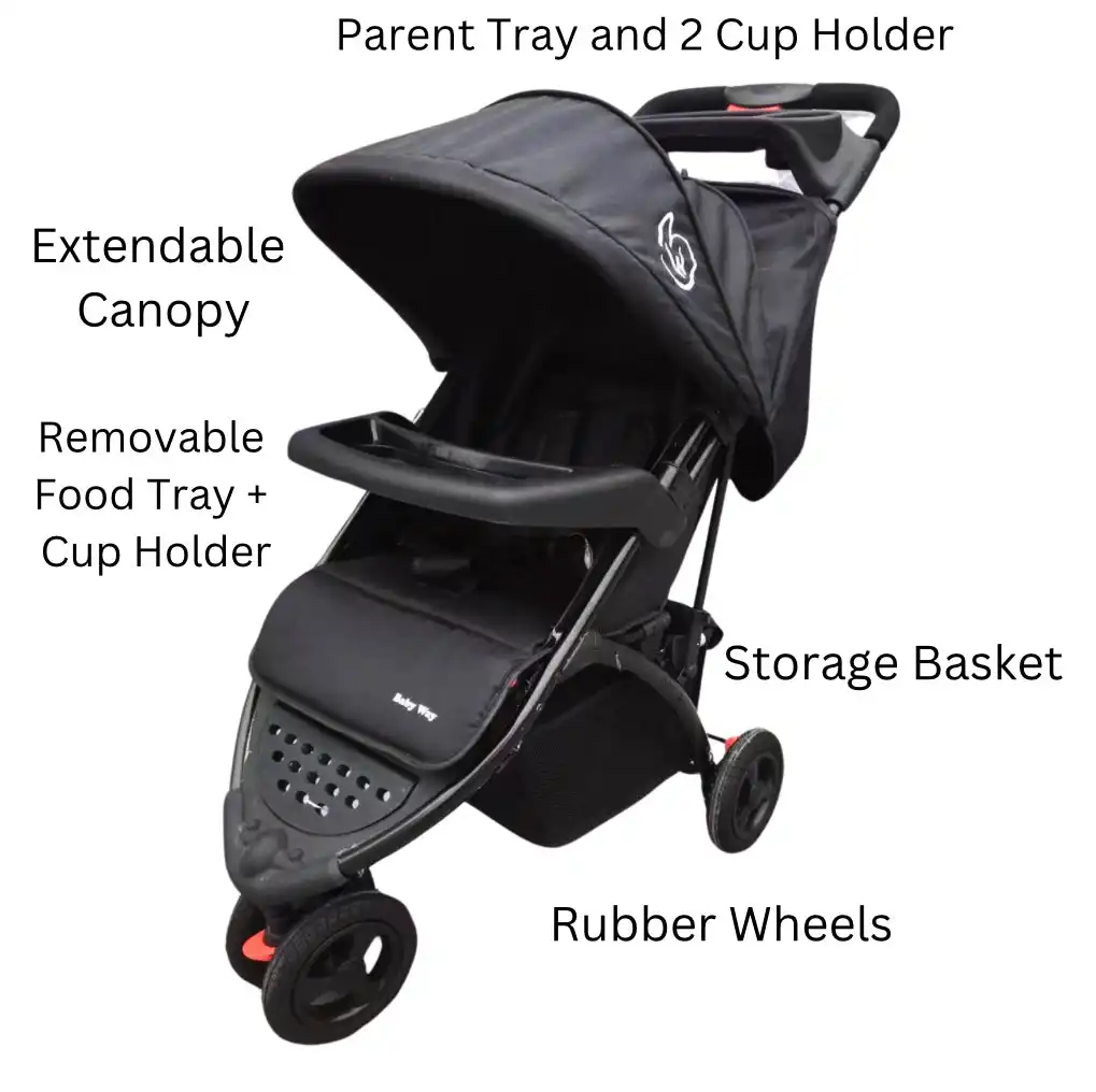 Introducing ‘The Jogger’, a stroller designed for parents with an active lifestyle. Its compact 3-wheel design ensures superb manoeuvrability, making it ideal for navigating busy city streets or public transport. With a lightweight steel frame and the ability to quickly fold, this stroller is perfect for on-the-go families who value convenience without sacrificing comfort. Perfect for young children and toddlers, and on the go parents.