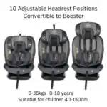 10-Position Adjustable Headrest – Grows with your child from birth to 10 years.