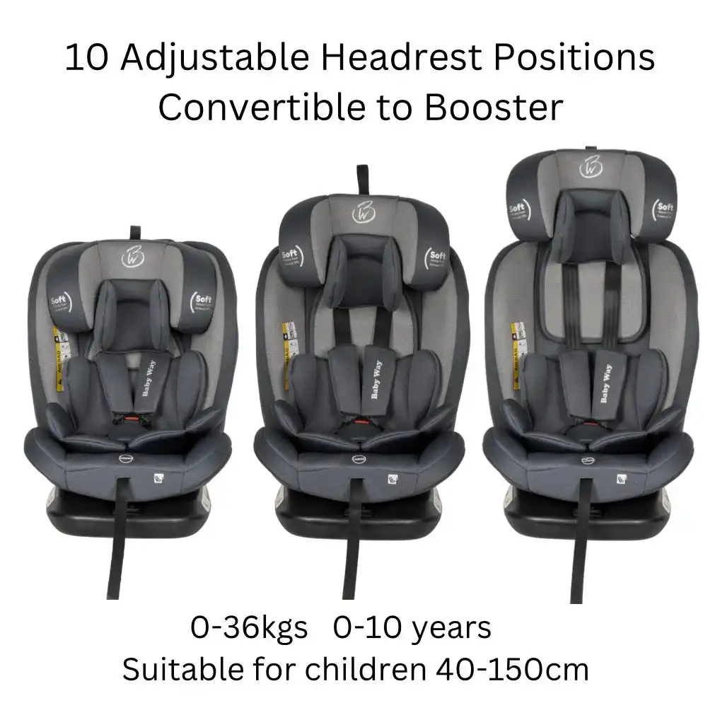 The All-Rider 360 Car Seat is the ultimate all-in-one car seat, designed to grow with your child from newborn to 10 years old (40-150cm, 0-36kg). Featuring a 360 rotating base for easy access, rear and forward-facing positions, and multiple recline angles, this seat ensures maximum safety and comfort for every ride. Certified to the latest i-Size R129 standard, it provides superior side-impact protection, adjustable memory foam headrest, and a 3-point ISOFIX + Top Tether system for a secure fit.