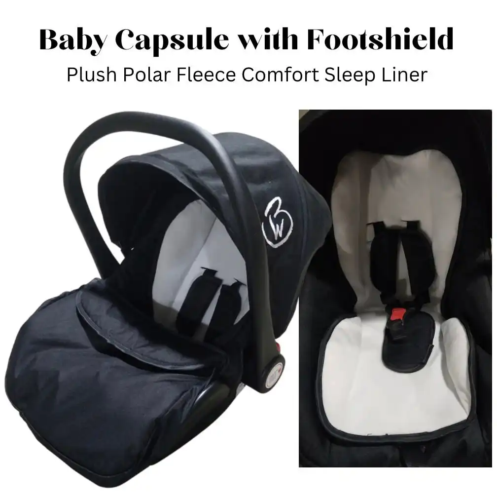 Provide your little one with the ultimate travel comfort with our Cozy Haven Baby Capsule with Foot shield. Designed for both safety and warmth, this baby carrier features a plush polar fleece comfort sleep liner, perfect for keeping your baby snug on cooler days.