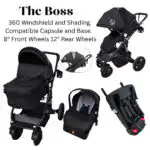 Meet ‘The Boss’, an all-encompassing travel system stroller set that provides unmatched protection, convenience, and style for your child. This set is thoughtfully designed for the modern parent who seeks functionality without compromising on quality.
