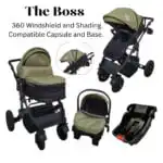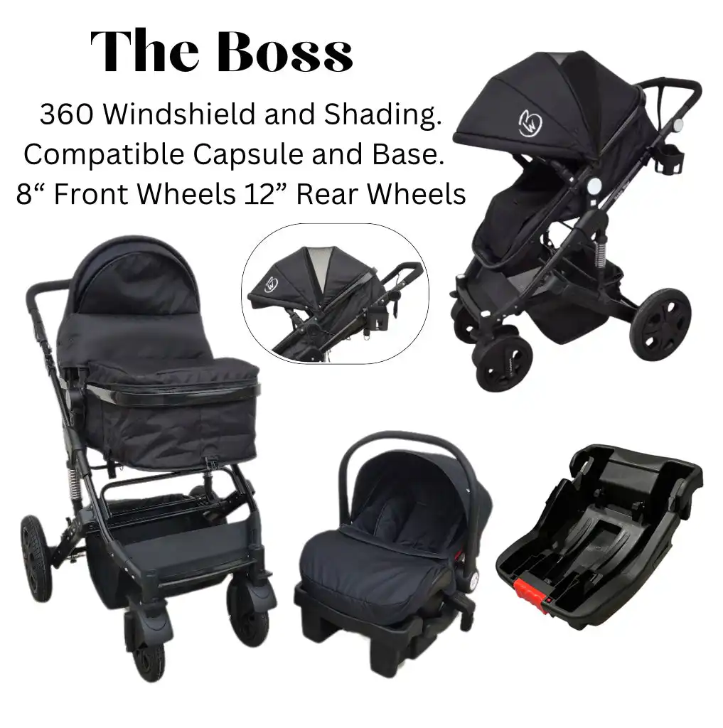 Meet ‘The Boss’, an all-encompassing travel system stroller set that provides unmatched protection, convenience, and style for your child. This set is thoughtfully designed for the modern parent who seeks functionality without compromising on quality.