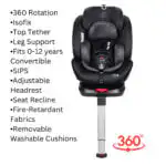 • Isofix & Top Tether: Ensures maximum safety and stability during travel.