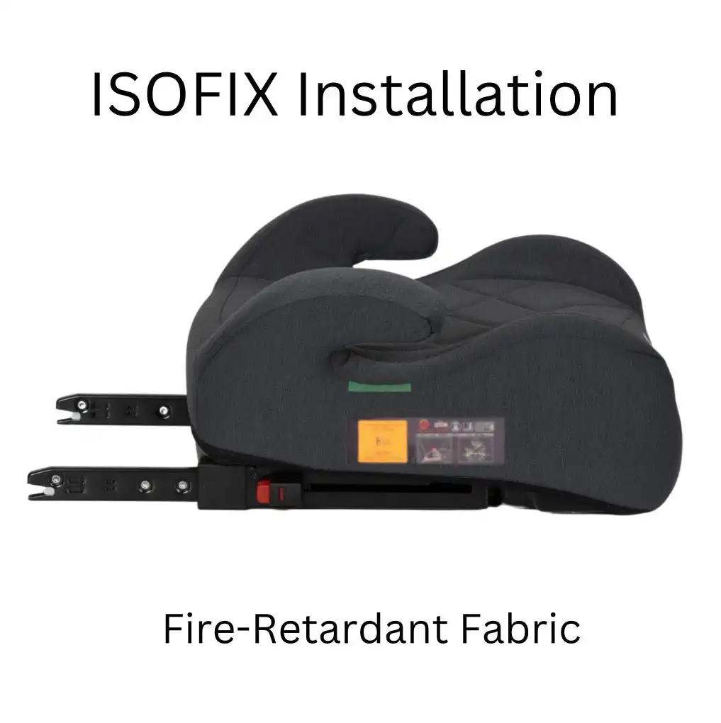The ClickSecure i-Size R129 Booster Seat is designed to provide optimal safety, stability, and comfort for children 125-150cm (approx. 6-12 years). Featuring ISOFIX installation, environmentally friendly fire-retardant fabric, and a removable cup holder, this booster seat ensures a smooth and secure ride while promoting a proper seatbelt fit.
