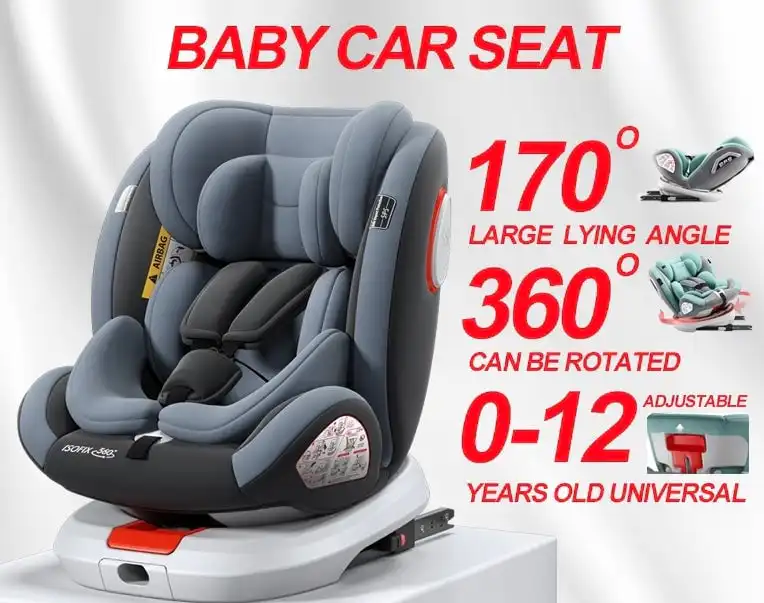 This Baby Luxury 360 Rotation and Convertible Car Seat with ISOFIX offers secure protection for your newborn. The seat rotates for easy access and provides adjustable 5-way protective headrest for your little one. It also comes with a leg support stabiliser and ISOFIX for secure installation, making it an ideal choice for parents.