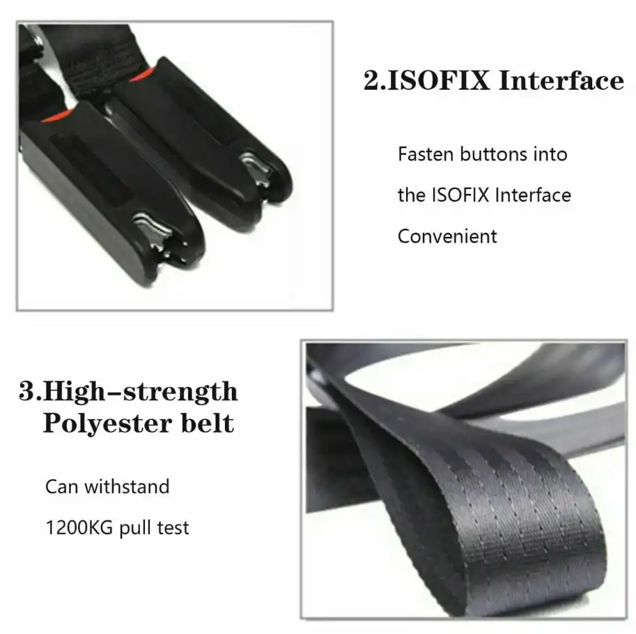 3. Secure the Buckles: Attach the ISOFIX buckles at both ends of the strap to the corresponding anchor points on your car.