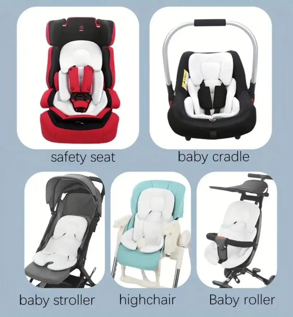 Designed to enhance the comfort of your baby’s safety seat, stroller, or high chair, ensuring proper support and padding.