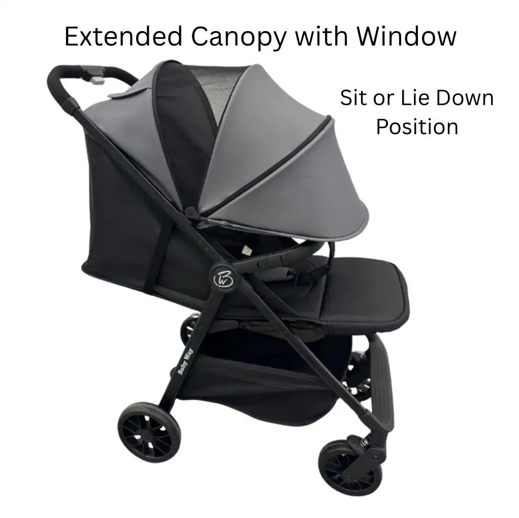 Roam Compact Travel-Friendly Stroller with Extended Canopy – BLACK