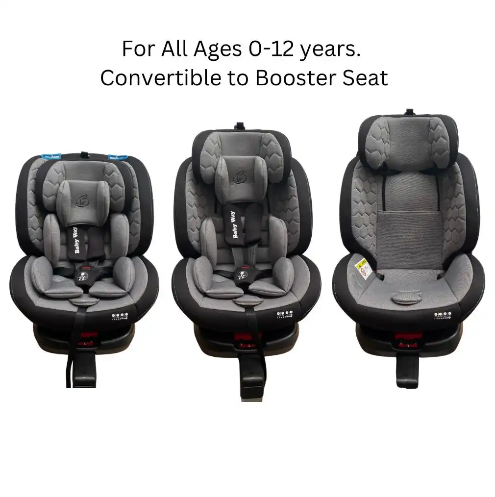 • Convertible Design: Suitable for all ages from newborn to 12 years, transitioning into a booster seat.