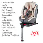 The SafeHalo 360 Rotating and Convertible Car Seat in Khaki offers stylish safety and comfort for children from newborn to 12 years. With features like 360 rotation, ISOFIX installation, and side impact protection, it ensures a secure and versatile solution for every journey. Easy to clean with removable cushions, it’s ideal for busy parents.
