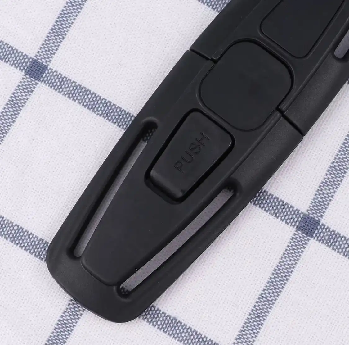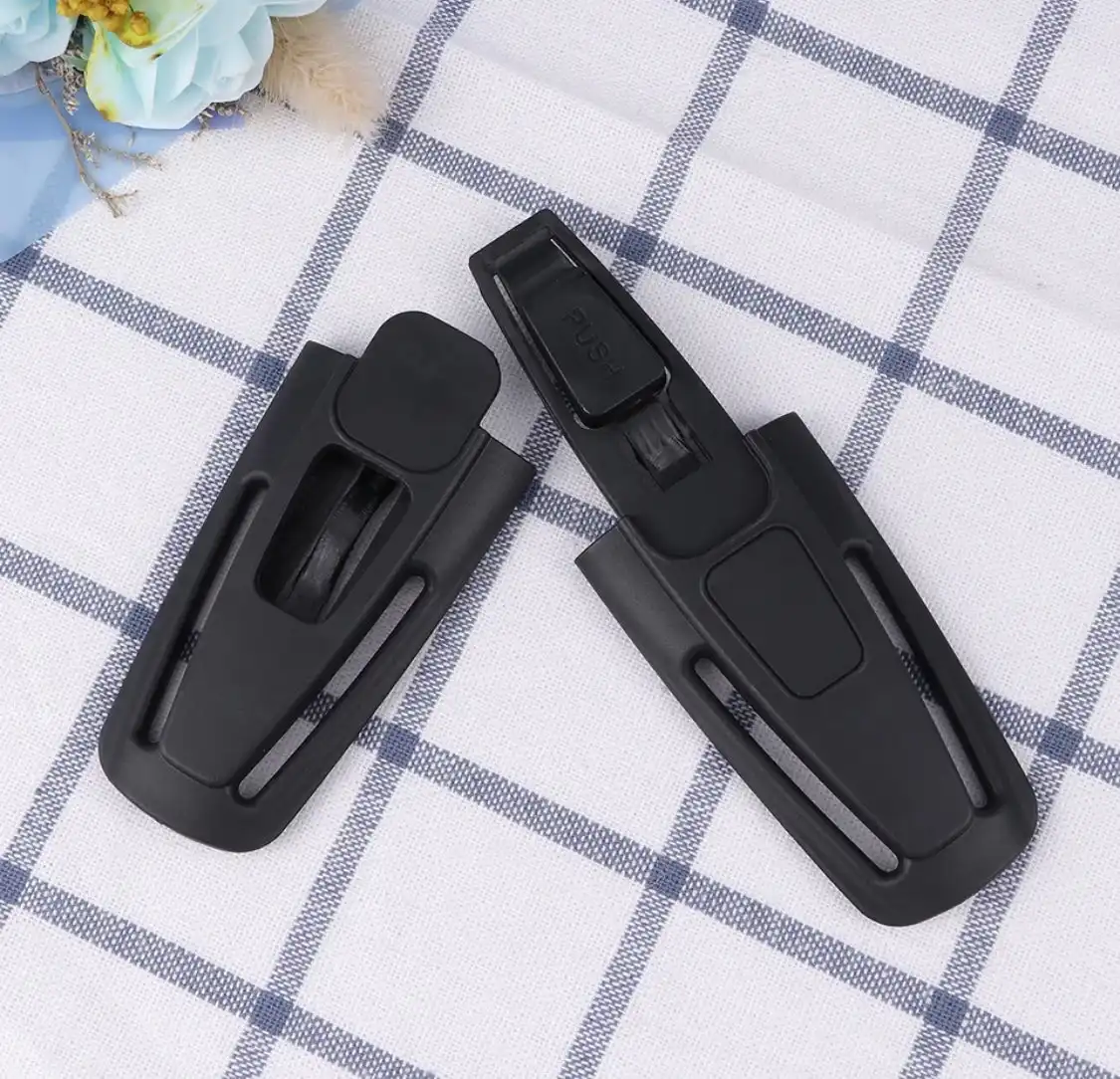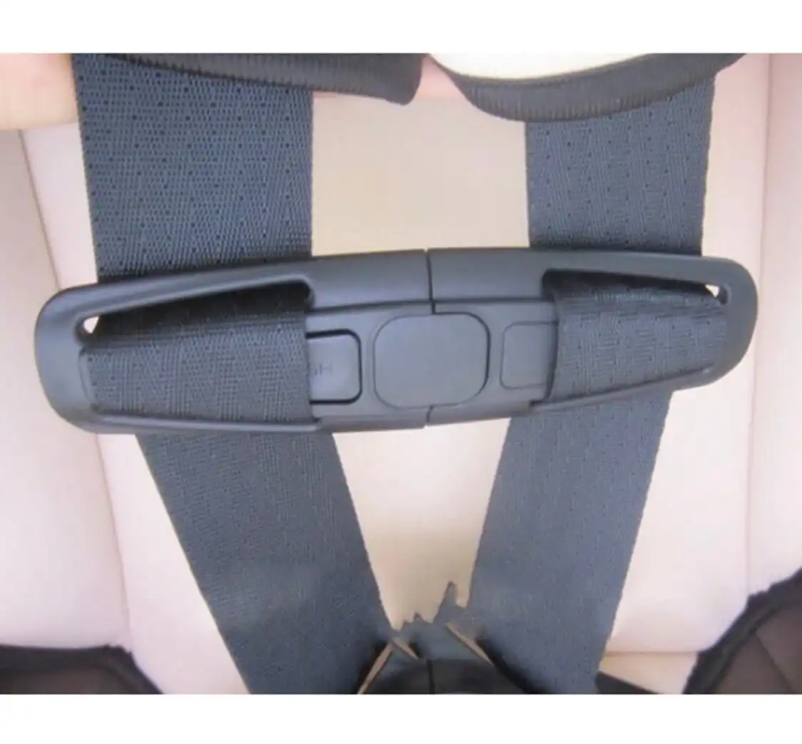 - Car safety seat strap belt clip buckle.