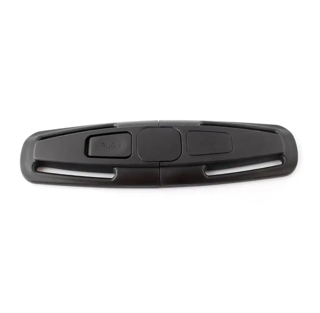 This item is a car safety seat strap belt clip buckle, which is made of durable nylon. This accessory provides enhanced security and a contoured seatbelt to guarantee the safety of the child.