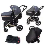 Supra – 3 in 1 Stroller + Bassinet + Capsule Car Seat Combo with Mattress, Food Tray and Grey Skin
