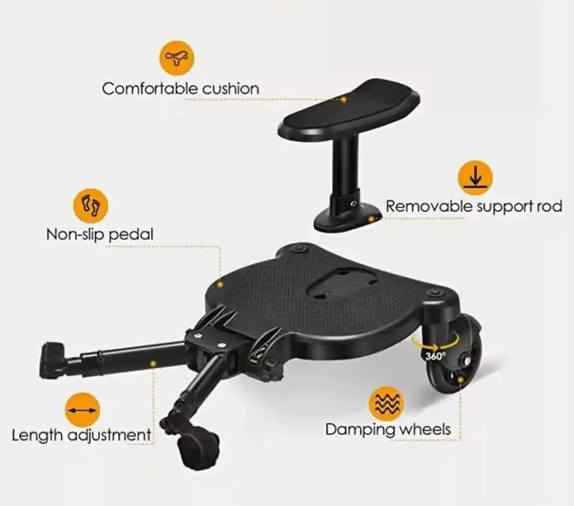 Make outings with two little ones easier than ever with our Universal Stroller Ride-On Board. Designed to attach seamlessly to most strollers, this board provides a safe and fun way for an older sibling to ride along when they get tired of walking.