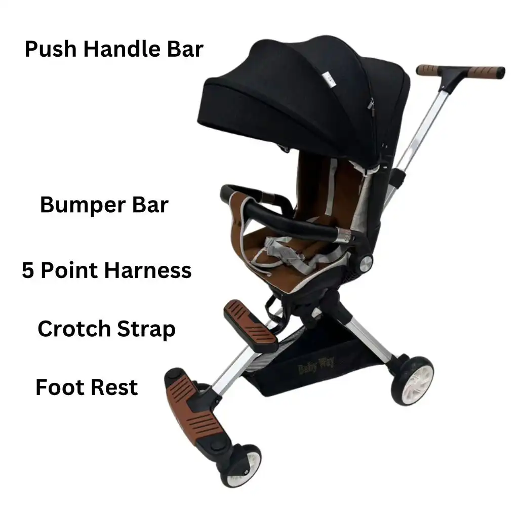 The Urban Rider 2-Way Stroller is the ideal companion for modern parents, featuring a lightweight, compact design that folds easily for travel. With 2-way facing options, adjustable recline, and durable wheels, it ensures a comfortable experience for both child and caregiver, making everyday outings effortless.