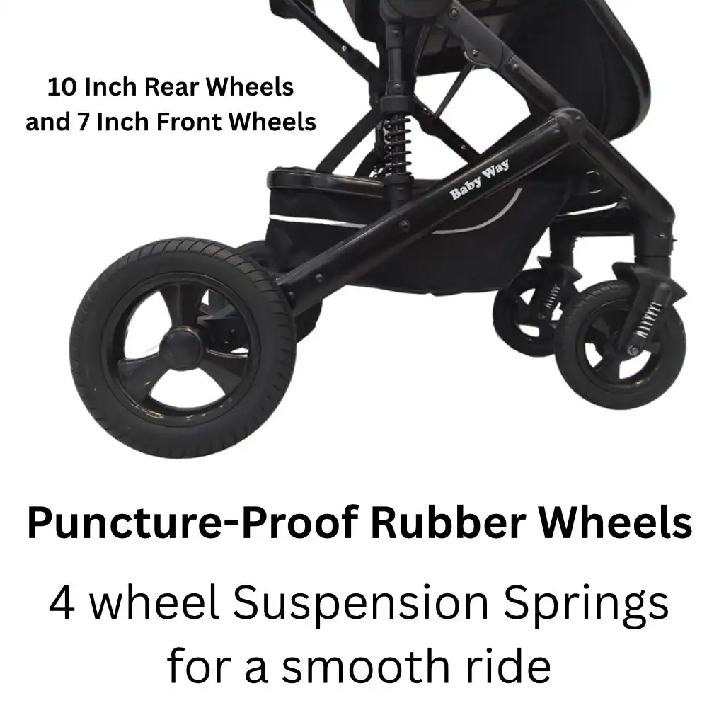 - All Terrain Rubber Wheels – 10” Rear Wheels & 7” Front Wheels with puncture-proof rubber wheels.