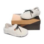 Wrap your feet in cloud-like comfort with our Barrett Curly Slippers, featuring luxurious curly sheepskin and a customizable ribbon detail. The breathable polyester lining and moisture-wicking wool footbed keep feet perfectly comfortable, while the textured EVA sole provides secure traction for indoor and outdoor wear. Dress them up with a bow or keep it casual – these versatile slippers adapt to your personal style.